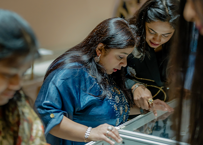 Of course. Our Ahmedabad store features a curated collection of rings, earrings, necklaces, and bridal sets for you to try and experience in person.
