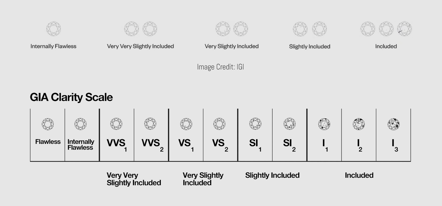 - The clarity grading scale is meant to be read by an expert and professional in the field and goes from flawless to included.